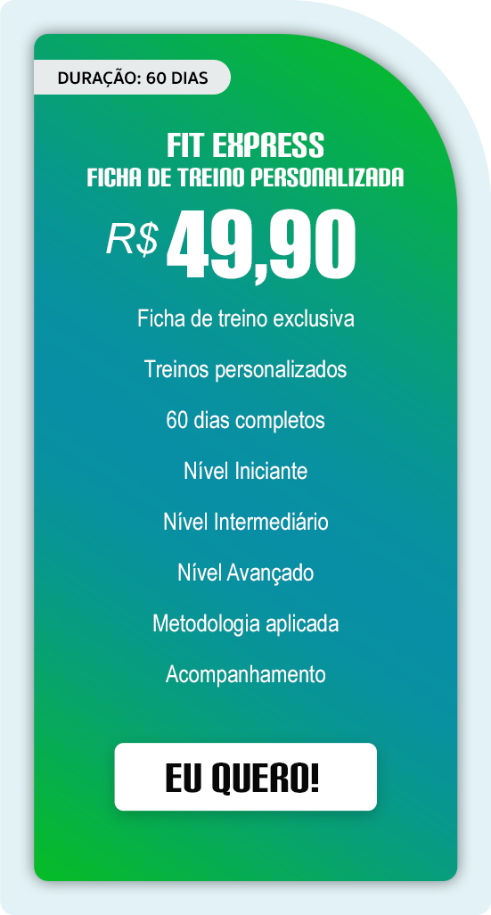 Com base na sua rotina, objetivo e nível de condicionamento, você recebe uma ficha de treino exclusiva, planejada para garantir evolução constante em 60 dias.